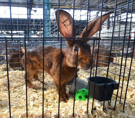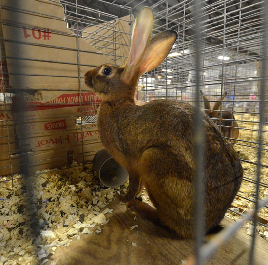 There's no other domestic rabbit which looks quite like a Belgian Hare - which isn't really a hare at all. It's a rabbit, descended from European wild rabbits, just like all other domestic rabbits. However, it looks very much like a hare (or a jackrabbit of the American West, which is actually a hare) - huge ears, and much thinner, longer and generally "rangier" than most rabbits. It has an ideal adult weight of 6 to 9.5 pounds. The fur is a deep red/brown, and the underside of the tail is white. There is a "ticking" of longer black hairs over the back and hips.
