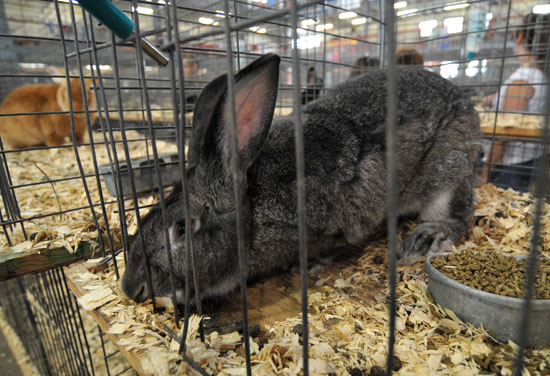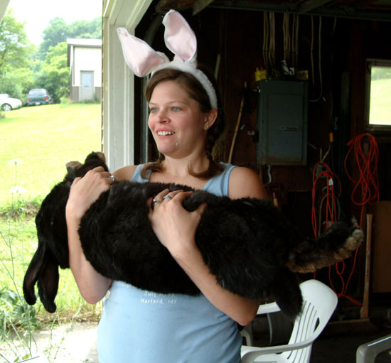This picture should give an idea of the size of an adult Flemish Giant (in Black color): |