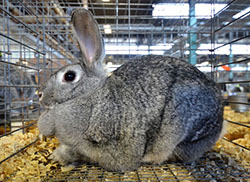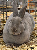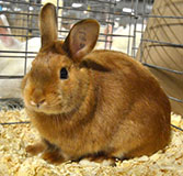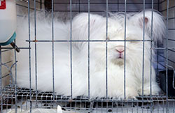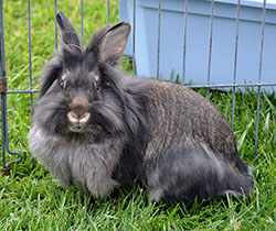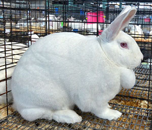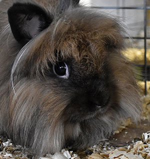 The fur on the rabbit's body is very long, three inches or more, and looks like sheep's wool: It's probably one of the Angora breeds - click here to go to UPRIGHT-ANGORA |