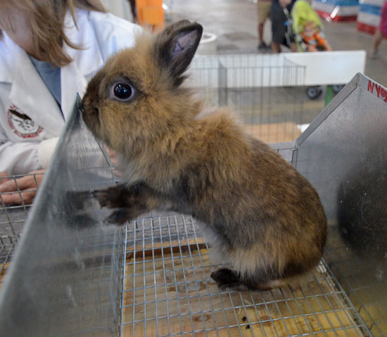 Lionhead rabbits have a single or double "mane" of longer fur around their heads like a small lion, with short fur over most of their bodies. They may also have longer fur on their hindquarters, so they look like they're wearing fuzzy leggings. Lionheads are small rabbits, between 2.5 and 3.5 pounds adult weight.