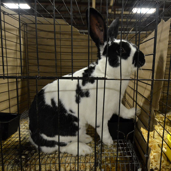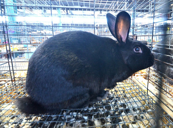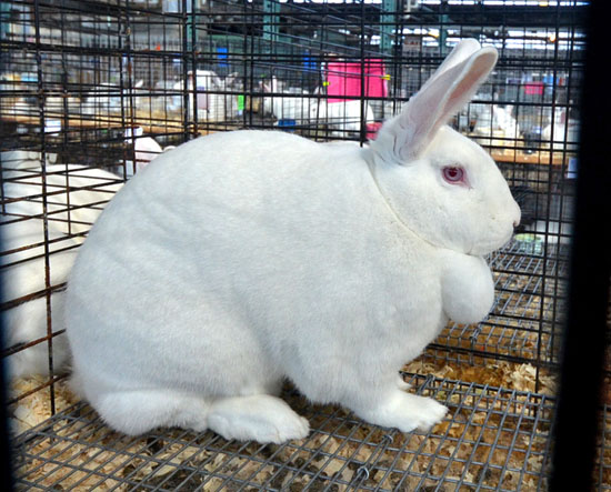 New Zealands are large rabbits, with an adult weight of 9-12 pounds. The ARBA approved colors are Black, Red, White and Broken (white with black or red markings). The back is curved evenly from the base of the ears to a peak at the hips, then smoothly down to the tail. It has "flyback" fur - if you stroke the fur "backward" (tail to head), it returns quickly to a flat position.
