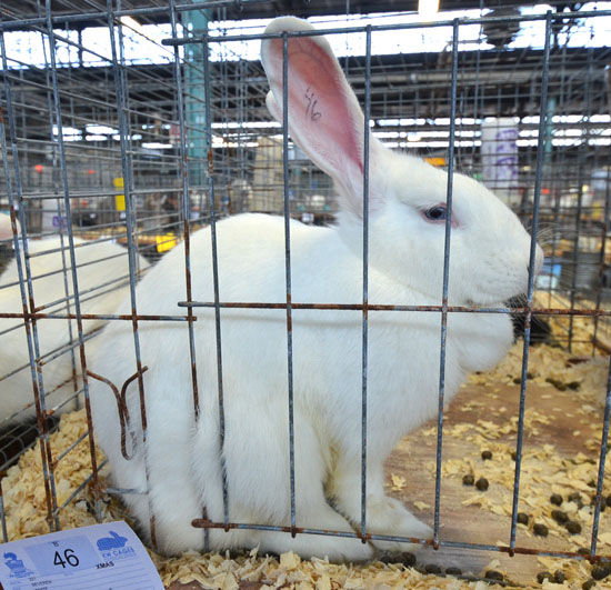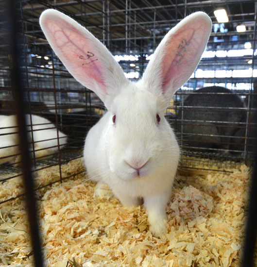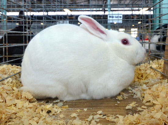 If your rabbit is white with red eyes, you should realize that "Red-Eyed White" or "Ruby-eyed White" is a description, not a breed. Many breeds have "REW" as a recognized color, and the albino mutation, which causes an animal to have white fur and red eyes, could occur in a rabbit of any breed, or of no particular breed at all.